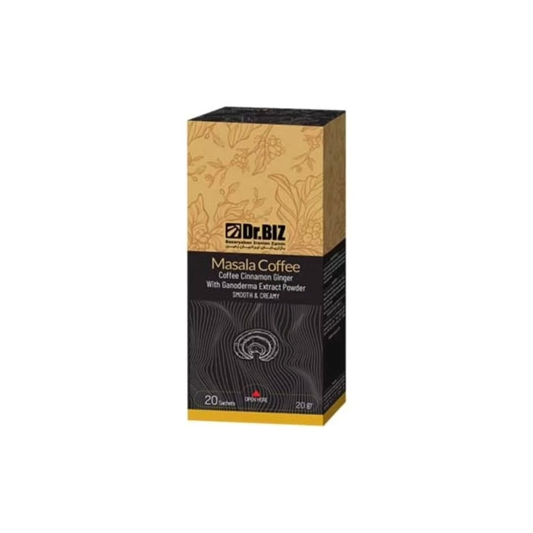 قهوه ماسالا حاوی قهوه عربیکا ، چای سیاه ، دارچین ، زنجبیل ، هل و پودر قارچ گانودرما است
